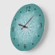 En vit, tolv-spetsig stjärna mandala på teal grönt.