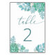 Teal Succulent Bröllop | Blå Grönt botaniskt Bordsnummer
