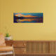 Redigerad målad bild av en solnedgång. färg är en ljus gult, orange och teal. Det är Belmont Bay som man ser från Mason Nacke State Park; lugnen vatten skapar en underbar reflektion över himlar.