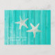 Teal Trä & Starfish Strand Elegant Spara Datum Meddelande Vykort