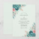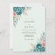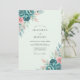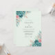 A serene wash of teal and soft pink watercolor roses and ranunculus anchors this ethereal design. Delicate greenery and sprays of leaves complement the lush blossoms against a pale mint backdrop. This aesthetic creates a sophisticated and romantic mood perfect for a seasonal event.