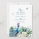 Teal Tropical Peacock Bröllop spara datum Card Datumet