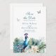 Teal Tropical Peacock Bröllop spara datum Card Spara Datumet