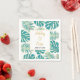 Teal och guld tropiska löv bröllop papper napkin. Det främsta syftet med detta enastående projekt är löven av Split Löv Philodendron (Monstera deliciosa) eller Swiss Cheese Plant och handflatan löv i tårblått med guld-kontur. En vit ram med guld-kontur innehåller texten.
