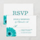 Teal Turcoise Aqua Daisy Bröllop OSA Cards med en akakal teal turkoise-blomma i nedre hörnet. teal, turkos, akvafblått, osa, svarskort, svarskort, blomma, blommigt, daisy, gerbera-daisy, gerbera-daisy