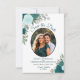 Det här bröllop spara datum-kortet har en rustik boho-chic-blommigt med skriptbokstäver och handmålad vattenfärg ro i färgnyanser och turkoser. Det finns en ovalformad ram för ditt foto med utrymme för parets placering i namn & bröllop. Elegant, snyggt och chic, det här kortet är ett underbart sätt att låta dina vänner och familj veta att spara datumet för din speciella dag.