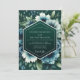 Ett dramatiskt och elegant stämningsläge skapas mot en djup, mörk bakgrund. Lysande vita och teal-färgade anemoneblommor kontrasterar vackert med stämningsfull jägaregrön och skifferblå nyanser. Mjuk grön lövverk och ömtåliga blå bär lägger till djup och struktur till det måleriska blomsterarrangemanget och frammanar den förtrollande skönheten hos en skymningsblomning.