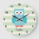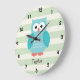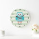 Teal Uggla på Pastel Grönt Rand Stor Klocka