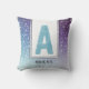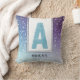 Teal Watercolor Monogram Galaxy Lila Snöflingor Kudde