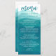 Teal ombre water wave bröllopsinbjudan med "meny" i ett skriptteckensnitt.