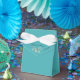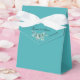 These teal wedding favor boxes feature a bold teal background accented with a romantic watercolor floral cluster and your names on the flap, then finished with a classic white ribbon bow for a polished presentation. They coordinate perfectly with your teal floral invitation suite and are ideal for presenting small treats, candies, or keepsakes to thank your guests in style.