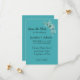 These teal wedding save the date cards feature a vibrant teal background accented with a romantic watercolor floral cluster at the top, drawing the eye to your names and wedding details in elegant script and serif fonts. The simple, modern layout keeps the focus on your important information while coordinating beautifully with the rest of your teal floral invitation suite.
