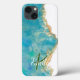 Teal & White Agate Marble Abstrakt Namn Monogram