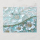 Teal White Blommigt vycard Vykort