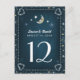 Teal White & Guld Måne & Stars Bordsnummer Cards