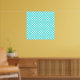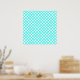 Teal White Harlequin Diamond Stripes Pattern Poster