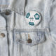 Den här personlig fotbosknappen för flickor (eller pojkar) har en realistisk bild av en fotboll som har teal- och vita paneler - anpassa spelarens namn, monogram- och jersey-nummer - efter katz_d_zynes