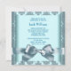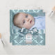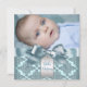 Tealblå Damask Baby Pojke Foto Dop Inbjudningar