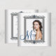 Eleganta tealblå och vita examensannonser med foto för flickor. Lägg till dina evenemangsuppgifter och foto i denna vackra tealblå examensannons.