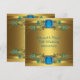 Eleganta guld- och tealblå blommor med teal juvelcenter klassiskt 50-års bröllopsjubileum inbjudan.