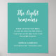Detta eleganta tealblå och vita minnesmärke med dess rörande "Ljuset består"-citat är ett vackert sätt att minnas och hedra den avlidne vid en minnesceremoni. Anpassa med din text längst ner.