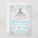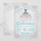 Tealblå Vinterundrets snöflinga Quinceanera-inbjudningar med elegant klänning på en vacker diamant- och snöflinga vinterundretsbakgrund. Dessa eleganta tealblå och silvergrå vinterundrets Quinceanera-inbjudningar kan enkelt anpassas för ditt evenemang genom att helt enkelt lägga till dina uppgifter.