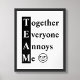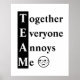 Om du är över gruppprojekt och har lite prat på kontoret ska du ta en dos sarkastisk sanning till din arbetsplats med denna feta svartvita typografi poster. Den märkliga omdefinieringen av "TEAM" som "Tillsammans alla känner mig," är underbar för kubikser, hemmakontor eller gemensamma arbetsytor, där lite humor går långt. Om du startar en konversation för roligten (eller varningstecken) är den här poster tillgänglig både vid utskrift och vid omedelbar nedladdning.