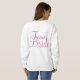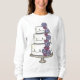 Sötskjorta har en originalmarkörillustration av en nivåindelad kaka för bröllop, med TEAM BRIDE i ett rosa och lila på baksidan.