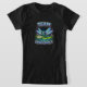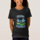 En glad tecknad trollslända med skimrande vingar står på en näckroslöv under en stjärnklar natthimmel och firar lagarbete, natur och lekfull anda.