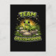 A cheerful, whimsical illustration of a cute grasshopper mascot celebrating teamwork, positivity, and playful nature vibes.