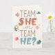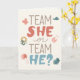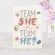 Ett lekfullt könsutlysning kort som ställer den stora frågan Team Hon eller Team Han. Med charmiga bebisillustrationer är denna design perfekt för att inbjuda vänner och familj att fira det spännande ögonblicket då bebisens kön avslöjas. Personifiera insidan med ditt eget meddelande eller lämna det tomt.