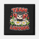 A cheerful cartoon ladybug perched on bright daisies with bold playful lettering celebrating team spirit and love for cute garden creatures.