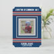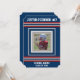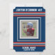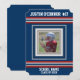 Röda, vita och blåa jersey sportiga ränder på en mörk marinblå bakgrund. Foto ram för att lägga till din idrottares lagfoto, och anpassa med ditt namn, tröjnummer, skola eller lagets namn, och "klass av" för ditt examensår.