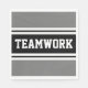 Den här sportetiska, atletiska designen har fet TEAMWORK-text inuti ett markerat vitt svart rand med dubbla vita ränder för tävla mot gråttets yttre ränder. Texten i den här designen kan vara personlig.