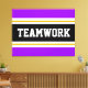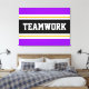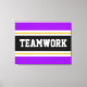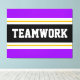 Den här sportetiska, atletiska designen har fet TEAMWORK-text inuti ett markerat svart rand med dubbla vit och gult tävla ränder mot ljusa yttre ränder av lila. Texten i den här designen kan vara personlig.