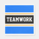 Den här idrottsliga designen har fet TEAMWORK-text inuti ett markerat svart rand med dubbla vit och gult tävla ränder mot ljusblå ränder. Texten i den här designen kan vara personlig.