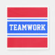 Den här idrottsliga designen har fet TEAMWORK-text i ett högljutt, ljusblått rand med dubbla vita ränder i tävla mot ljusröda yttre ränder. Texten i den här designen kan vara personlig.