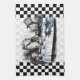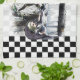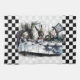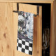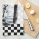 16" x 24" kökshandduken med en vintage Alice i underland avbildar av Alice på det tokiga hatter'sens teapartyet med marsharena, och dormousen på en grått- och vitschackbräde med bred svartvit schackbräde gränsar. Se att matcha trasaservetten, den pappra coctailservetten, trasabordstablett, papper bordstablett och underlägg. Se den hela underlandkökshandduksamlingen i linnena för FOOD/BEV | dela upp.