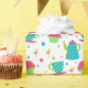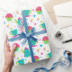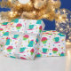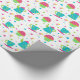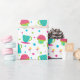 En roligt som slår in papper med ett teapartytema som presenterar tekannan, teakoppar och muffins i rosor, blått och ljust - göra grön med daisy och polka dots. Skapat med diagramby©Riefkadesigner