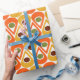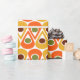 Detta papper har en modern utformning i mitten av århundradet, som består av upprepande droppar i orange och guld med cirklar av grönt eller brunt inuti en vit fält. Om du tycker om designen men föredrar olika färg, säg mig.