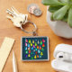 Teardroppar vattenfärgsfärgade, viskösa fyrkantig silverfärgad nyckelring