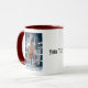 En mugg med en rolig tecknad om boxning. Originalteckningar efter DB-Tecknader.