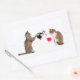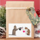 Porträtt av två katter som är vända mot varandra, en som är upphöjd på baksidan av ben och som på ett slarvigt sätt häller från en keramisk kattariktyr tekanna till en rosa kopp som hålls av den andra, eftersom de njuter av sin tid