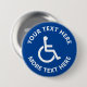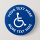 Tecknet anpassningsbarnas funktionsnedsättning: Rullstolsikonens knappnålknapp. Gör egna teckenknappar för anpassningsbarna. Blått och vitt avaktiverad symbol med textmall.