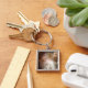 Teckenkollage Fyrkantig Silverfärgad Nyckelring