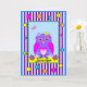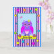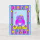 Ett födelsedagskort med ett sött uggla i ett dekorativt ram med färgat mönster (rand, polka dots och små geometriska former). Kortet har på framsidan av namn och inne i tekttesten: "Önskar dig en Grattis på födelsedagen!" Namn och att önska dig ett kort är mallobjekt som enkelt kan anpassas. Du kan också ändra färgen i bakgrunden med hjälp av funktionen Redigera / (avancerad) bakgrund.
