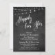 Denna sofistikerade men rustika bröllopsinbjudningskort har en strukturerad tavla bakgrundsbild överlagrad med en bild som visar strängar av vita glittrande ljussträngar. Jag har använt ett elegant, virvlande typsnitt för att återge grafik som visar orden "Happily Ever After"; på baksidan har jag placerat ordet "love". Din egen text läggs enkelt till för att anpassa denna design så lite eller mycket som du önskar. Använd mallfälten för att helt enkelt ange dina personliga uppgifter och klicka för att anpassa ytterligare om du vill flytta på några av de upplåsta lagren. Det finns en svag, ogenomskinlig svart överlagring ovanpå tavlan; ta bort den om du hellre vill ha en ljusare tavla i bakgrunden. Tveka inte att höra av
