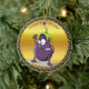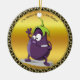 Tecknad äggplanta med stora öga grönt-hår julgransprydnad keramik