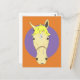 Tecknad ansikte på lila och orange vykort
