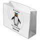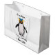 Ett lycklig macaroni penguin-redo för havet. Ritad i roligt tecknad stil.